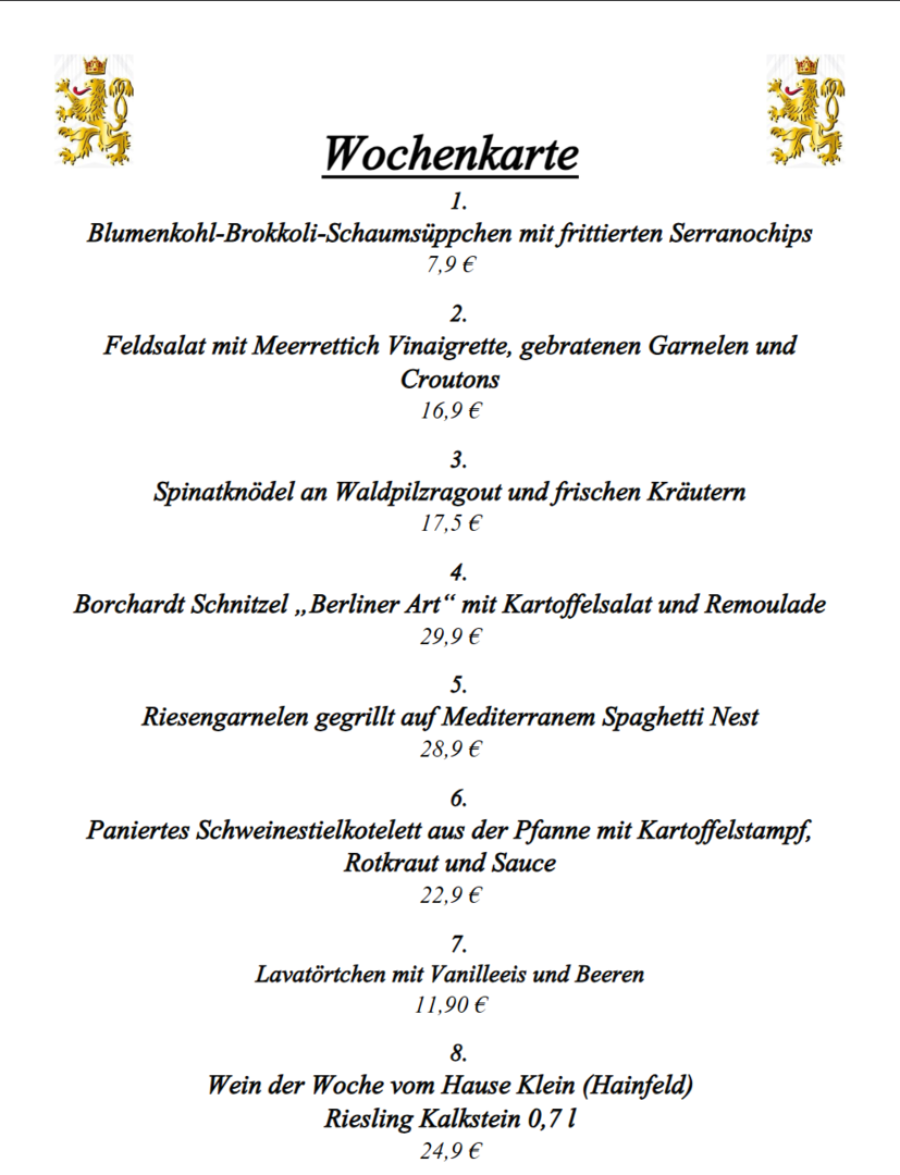Unsere aktuelle Wochenkarte